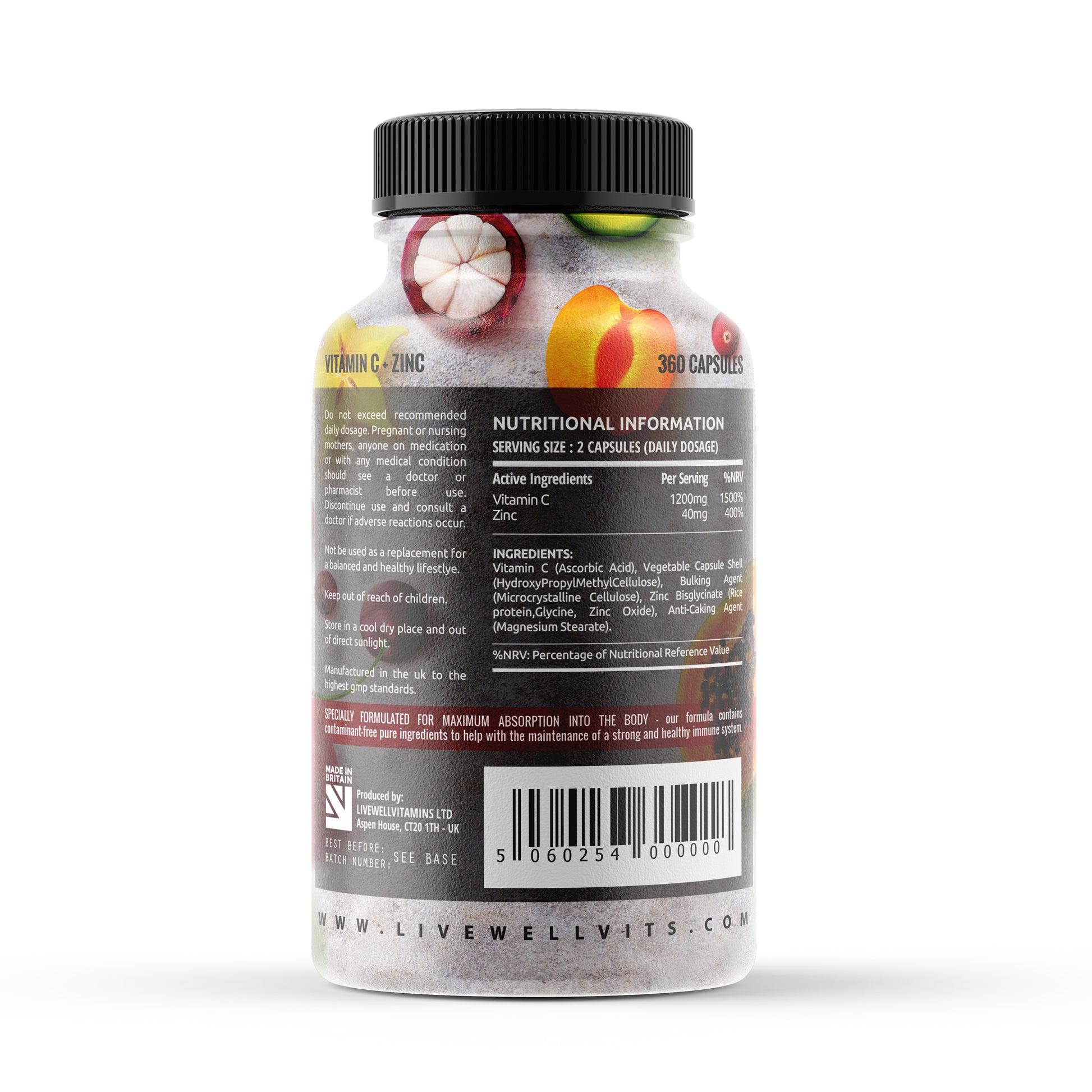 MAXIMUM STRENGTH – LiveWell’s Vitamin C + Zinc capsules have been specially formulated to provide 1200mg of vitamin c with the added benefit of 40mg of zinc per serving, our capsules are absorbed faster into the body than tablets due to the rapid release HPMC (veggie) shell and are much easier to swallow.